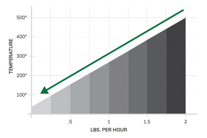 Your results may differ due to:Food in the cavity, which absorbs BTU's as it cooks. Usage of a different brand of pellets. Opening and closing the lid. Operating at higher or lower temperatures than testing conditions. Operating in wind.